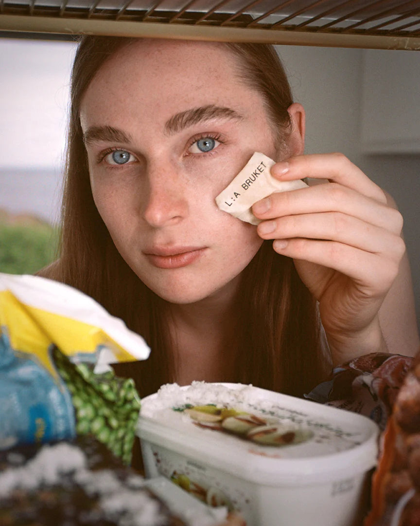 Step 3 – Scorri delicatamente sul viso, collo e décolleté per 1-2 minuti, lasciando che l’Ice Cube si sciolga attraverso il tessuto e infonda la pelle.