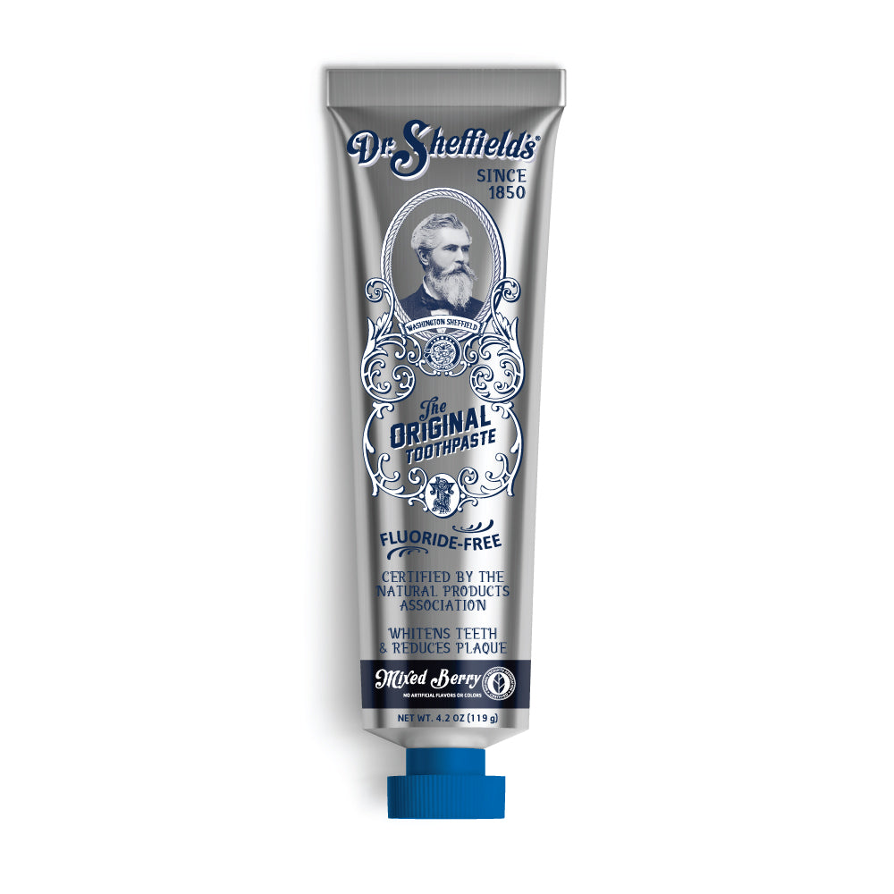 Il dentifricio Dr. Sheffield’s ai Frutti di Bosco restituisce luminosità al tuo sorriso con un irresistibile gusto di frutti misti!